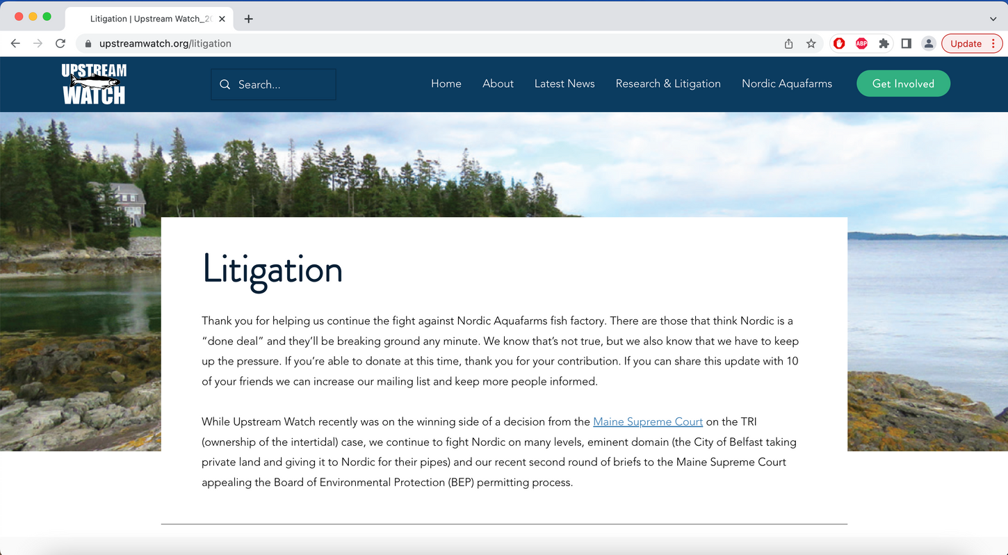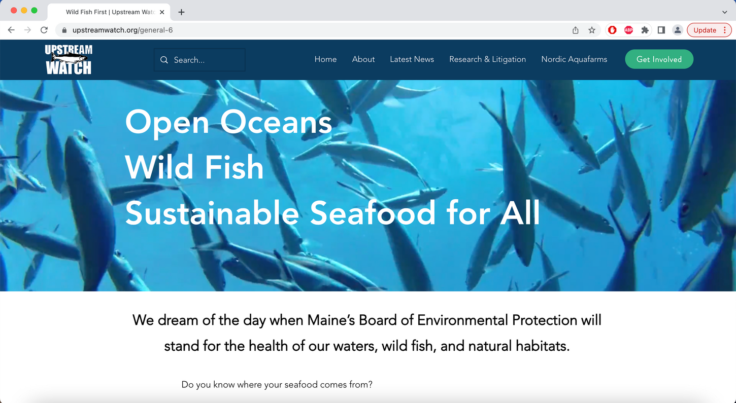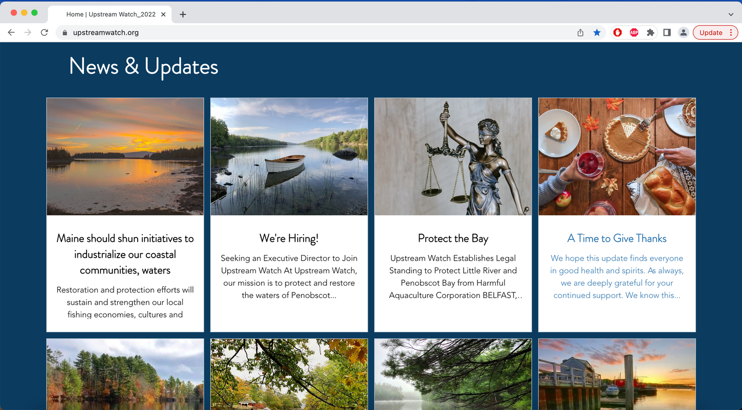 Website redesigned from the ground up for Upstream Watch, a nonprofit 501(c)(3) conservation organization located in Belfast, Maine.